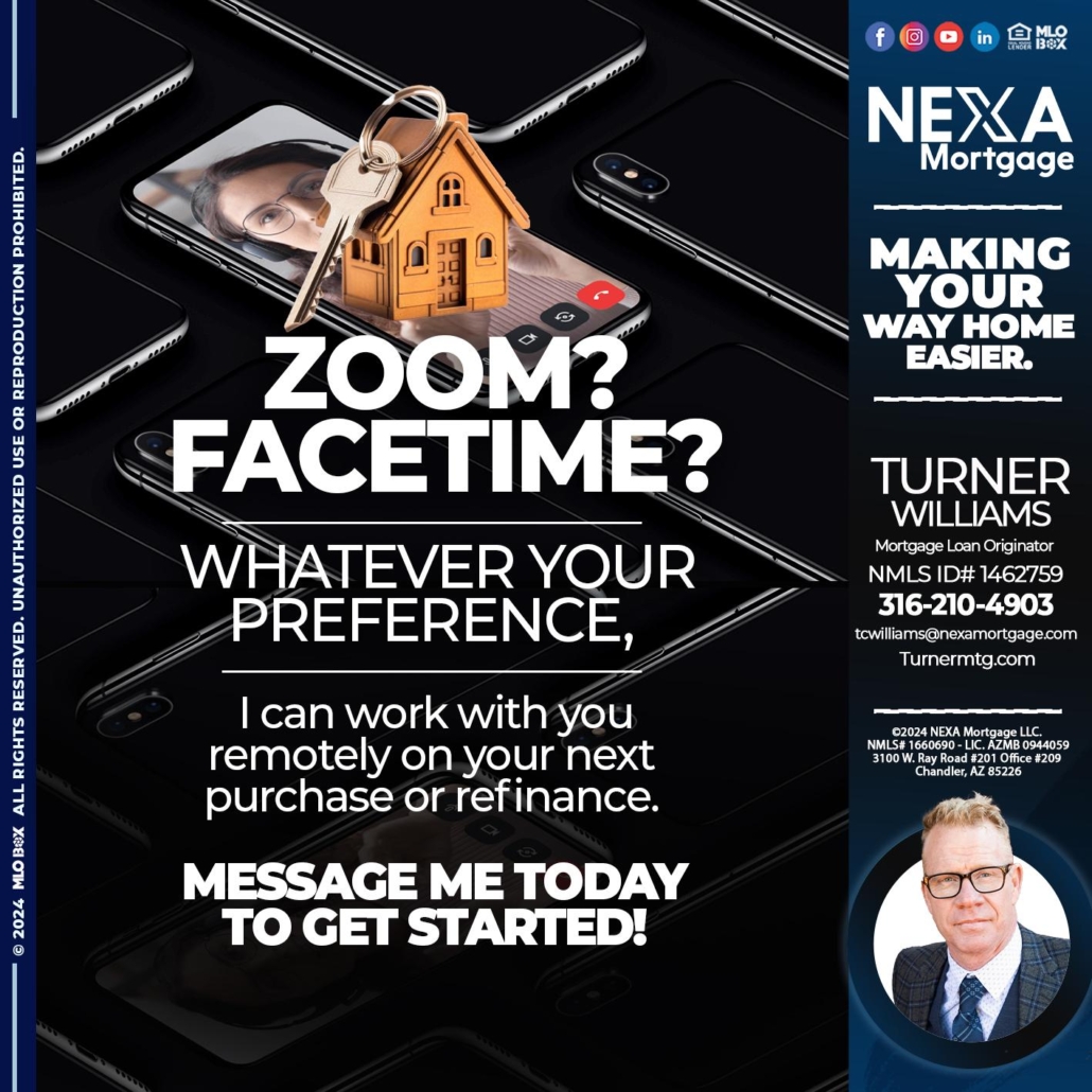 Hi, my name is Turner Williams. I’m a Loan Officer with Nexa Mortgage, offering personalized mortgage solutions, fast customized quotes, great rates and service with integrity.